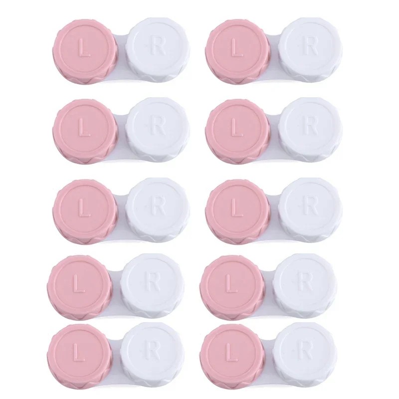 Sada pouzder na kontaktní čočky 10 ks velikost 5,5 x 1,4 cm plastové barevné pouzdro s označením L a R pro každodenní použití