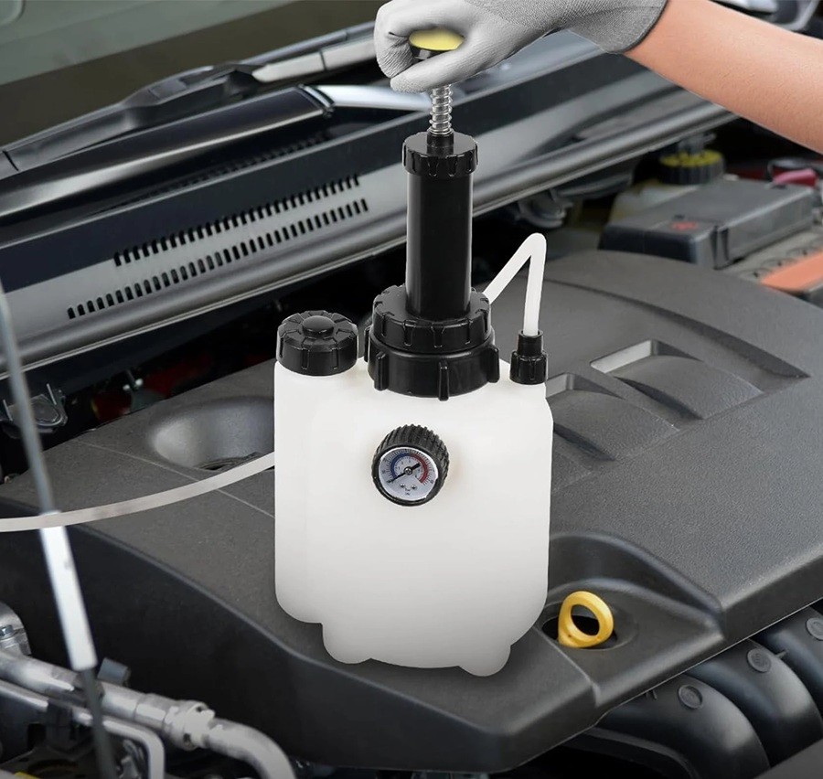 Ruční sada pro odvzdušnění brzd s nádobou 3L, manometrem a hadicí. Vhodná pro servis brzdového systému v domácích podmínkách. Celý popis