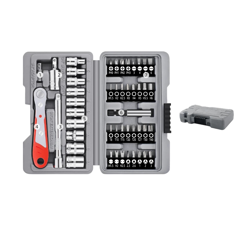 Sada ráčny a bitů Apollo 47 ks 0,64 s rychloupínáním chrom vanadová ocel šedo červená pro opravy automobilů a dílnu bitový klíč