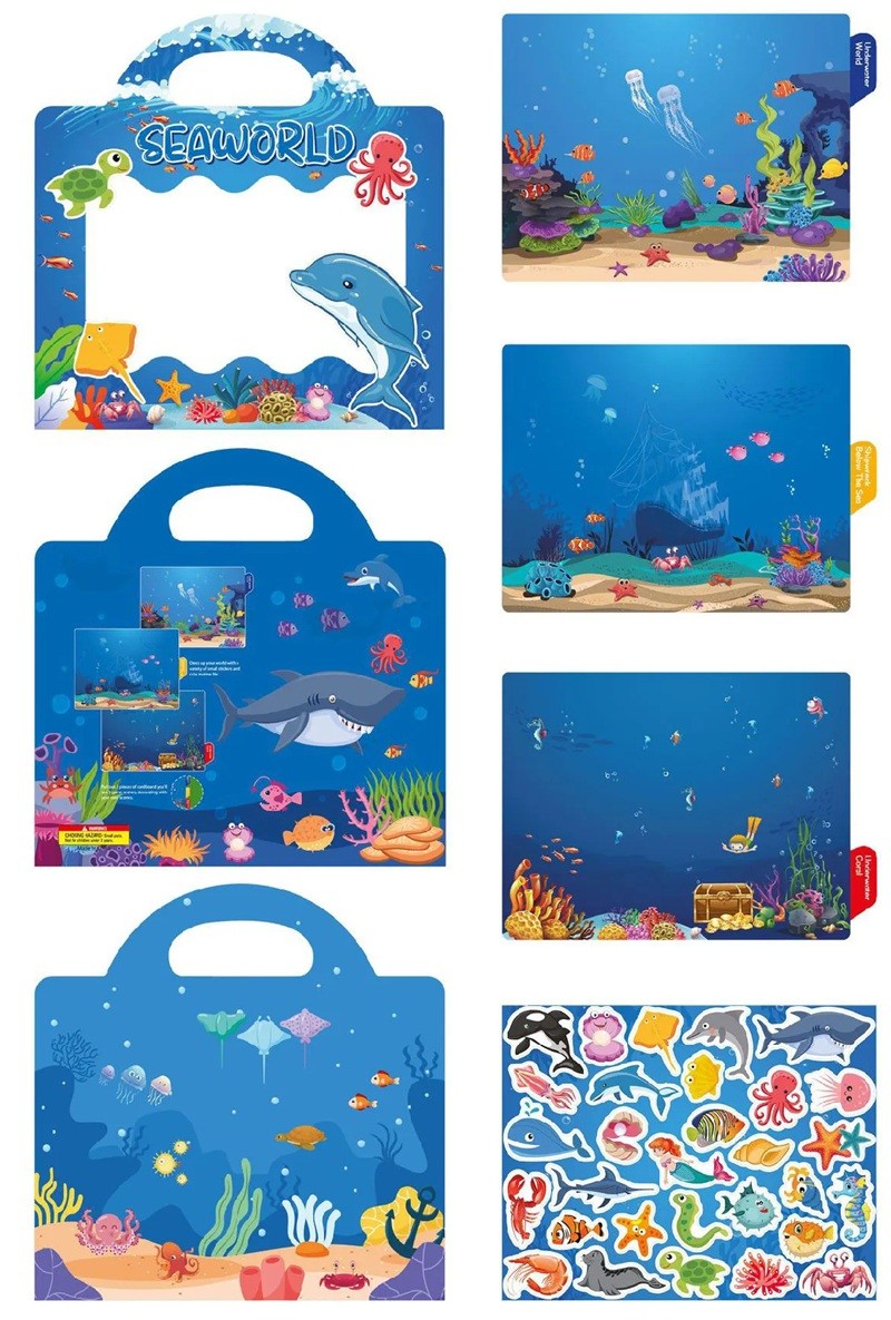 Úvodní strana Úvodní strana Vše pro děti Hračky pro děti Kreativní hračky Samolepkový sešit s mořským světem 26 x 25,6 cm vinylové samolepky modrý kreativní blok pro děti na lepení a hraní