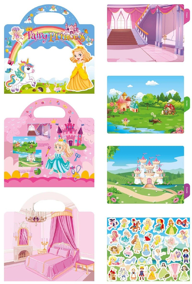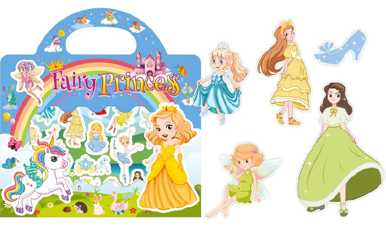 Na obrázku jsou patrné motivy princezny, jednorožce, víl, zvířátek a dalších pohádkových prvků. Děti mohou vytvářet vlastní scénky a měnit rozmístění jednotlivých samolepek podle nálady. Vinylové samolepky jsou uvedeny přímo na obalu výrobku. Sešit je vhodný pro domácí použití, cestování i klidné chvíle během dne. Barevné ilustrace podporují představivost a tvořivou hru.