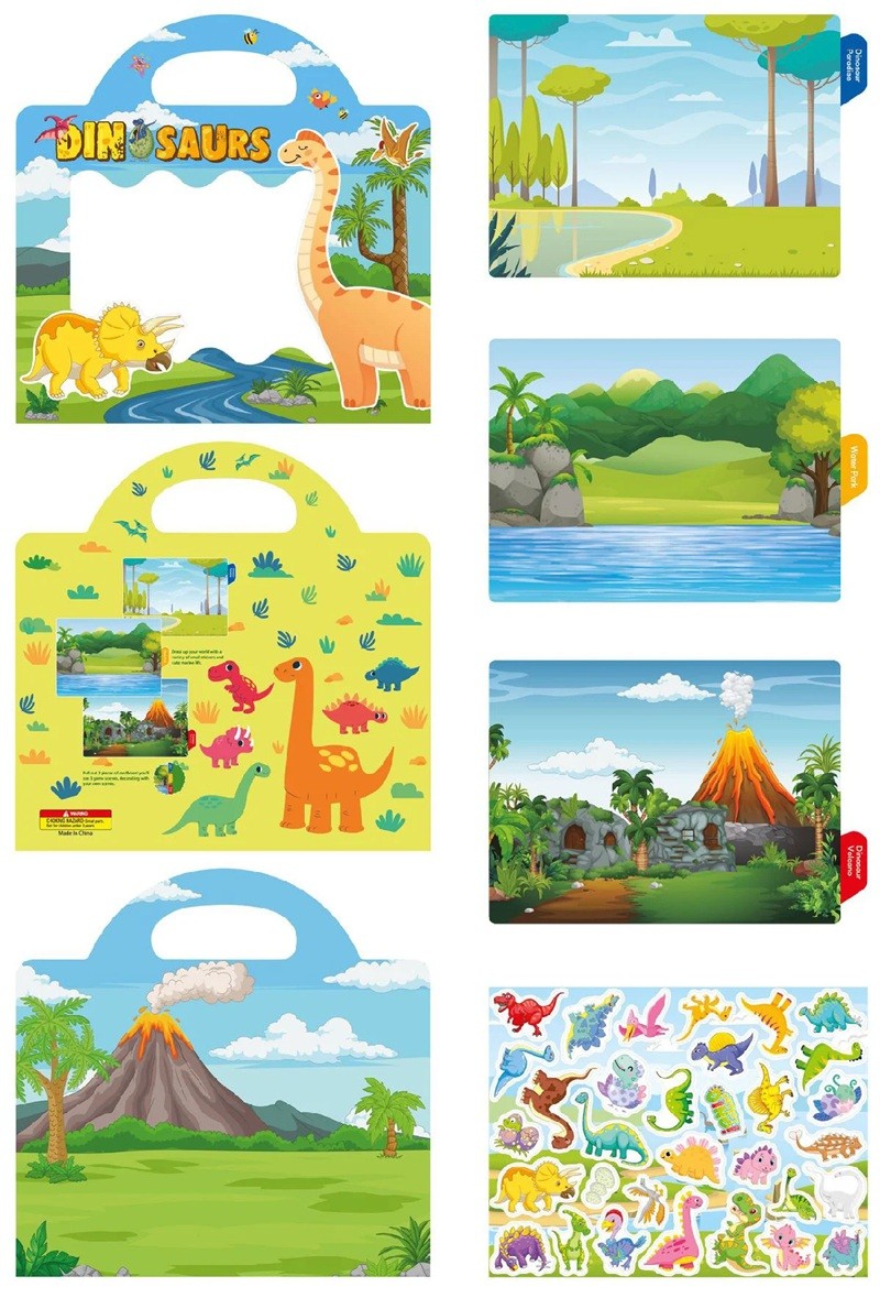 Úvodní strana Úvodní strana Vše pro děti Hračky pro děti Kreativní hračky Samolepkový sešit s pozadím dinosaurů 26 x 25,6 cm vinylové samolepky modrý kreativní blok pro děti na hraní a lepení
