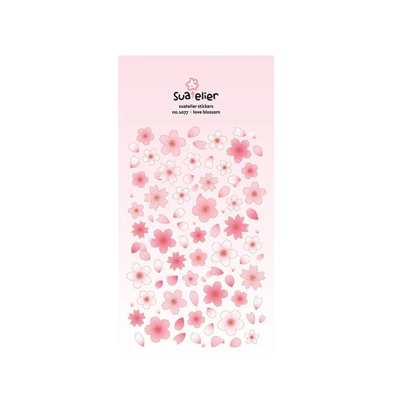 Dekorativní arch samolepek je inspirovaný jemnými květy sakury a padajícími okvětními lístky. Na archu jsou viditelné ilustrace růžových květů v různých velikostech a tvarech, doplněné drobnými lístky. Praktický rozměr 9,2x15 cm umožňuje pohodlné uložení do diáře, penálu nebo zásuvky s kreativními potřebami. Samolepky jsou vyrobeny z PVC materiálu, který je vhodný pro běžné dekorování hladkých povrchů. Světlý růžový podklad doplňuje květinové motivy a vytváří jemný, elegantní vzhled archu.
