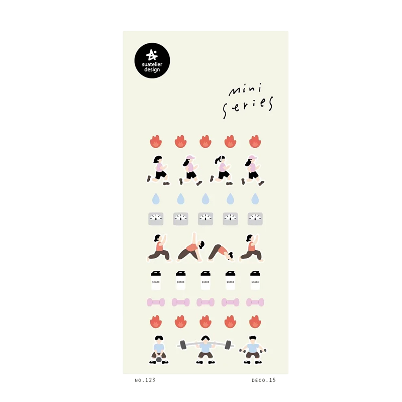 Samolepky s motivem cvičení mini series 9,2x15 cm matný papír béžové dekorativní nálepky do diáře a scrapbooku