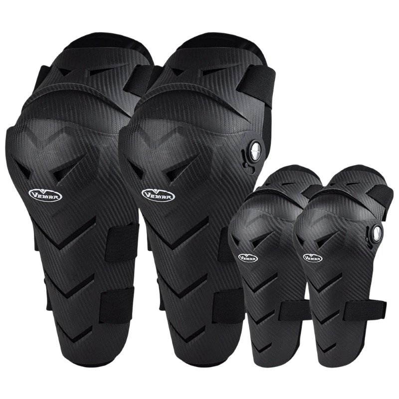 Set chráničů kolen a loktů je navržen pro použití při jízdě na motorce i v náročnějších podmínkách. Poskytuje ochranu důležitých částí těla při pádech a nárazech, které mohou nastat při jízdě v terénu nebo na silnici. Díky kombinaci kolenních a loketních chráničů pokrývá klíčové oblasti potřebné pro bezpečnější jízdu. Konstrukce je přizpůsobena tak, aby chránila a zároveň neomezovala pohyb.