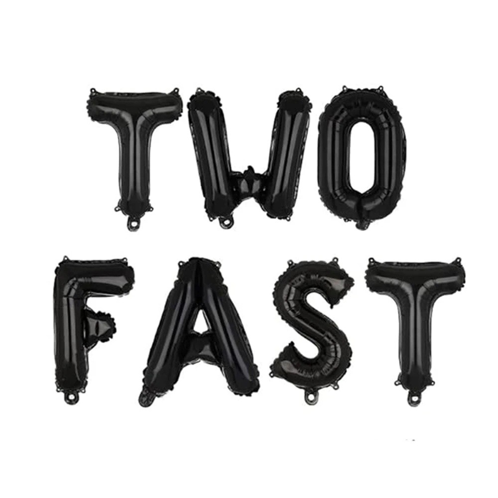 - Obsah balení: sada fóliových balónků tvořící nápis Two Fast