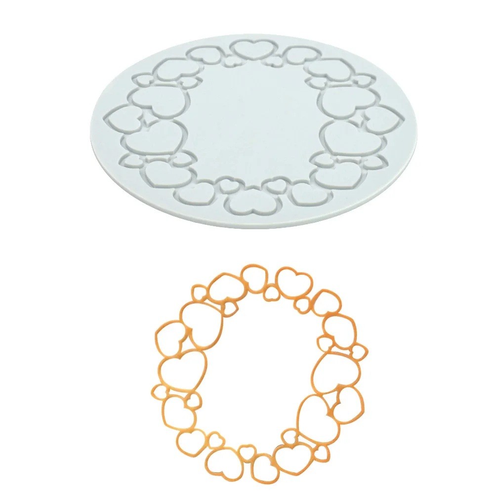 Silikonová forma ve tvaru kruhu ze srdíček je praktickým nástrojem pro dekorování dortů, dezertů a dalších sladkých pokrmů. Umožňuje vytvořit souvislý ornament ze srdíček, který působí elegantně a zároveň výrazně doplní vzhled hotového výrobku. Díky jednoduchému použití je vhodná pro každodenní pečení i speciální příležitosti.