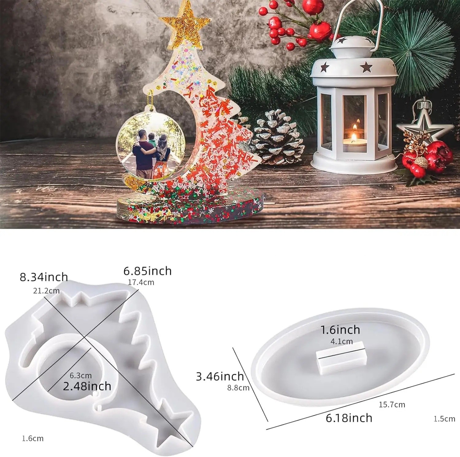 Silikonová forma sada na výrobu vánoční dekorace Strom s hvězdou a podstavcem Forma na pryskyřici epoxid odlévání ozdob