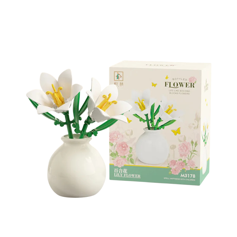 Tento stavebnicový model bílé lilie vyniká svým čistým a elegantním designem. Kombinuje jednoduchost, estetiku a tvořivost v jednom. Plastové stavebnicové dílky umožňují snadné sestavení a výsledek působí realisticky i moderně. Bílá lilie symbolizuje čistotu a harmonii, zatímco jemná bílá váza dotváří celkový dojem elegance.
