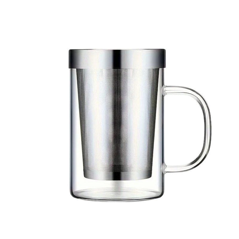 Skleněný hrnek s čajovým infuzérem 477 ml 120 x 81 mm borosilikátové sklo s nerezovým filtrem čirý pro přípravu čaje