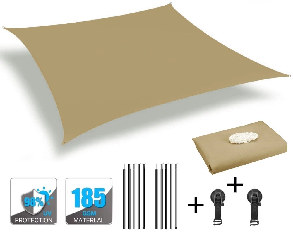 Sluneční plachta k autu obdélníková stínící plachta s tyčemi a přísavkami přístřešek pro SUV kempování cestování