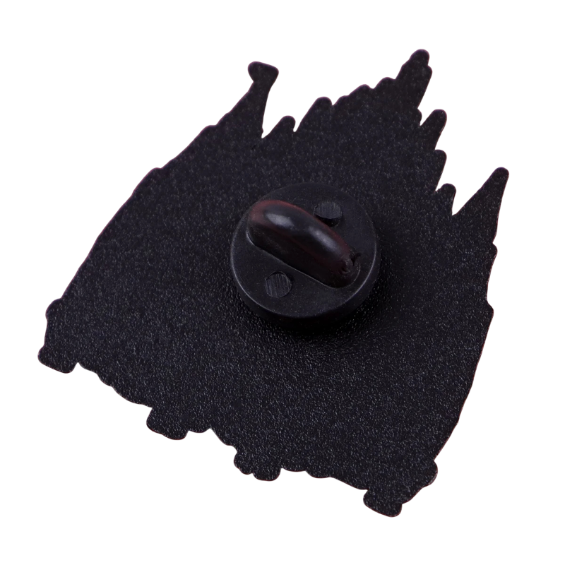 Tato smaltovaná brož s kresleným motivem zachycuje dvě výrazné postavy – čarodějnici a princeznu – stojící před stylizovaným hradem. Kontrast mezi světlými a tmavými prvky spolu se zeleným pozadím vytváří vizuálně zajímavý doplněk, který vynikne na oblečení i doplňcích. Motiv je detailně zpracovaný a dobře čitelný i při menší velikosti.