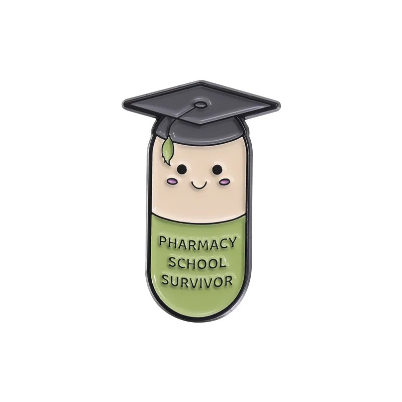 Úvodní strana Úvodní strana Šperky a Hodinky Brože Smaltovaný odznak kapsle s postavou absolventa 3 × 1,8 cm kovová brož zeleno-šedá nápis Pharmacy School Survivor doplněk