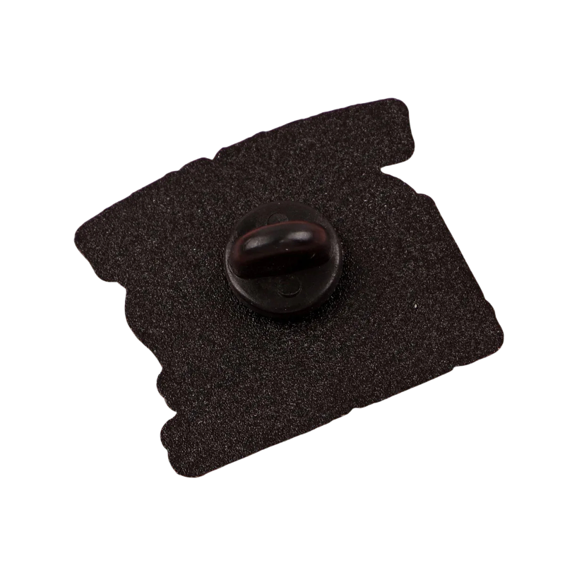 Smaltované provedení dodává odznaku hladký povrch a pevný vzhled. Tvar je přizpůsoben motivu, což přispívá k celkové vizuální zajímavosti. Pin lze kombinovat s dalšími odznaky nebo nosit samostatně jako drobný detail.