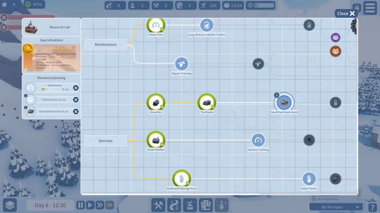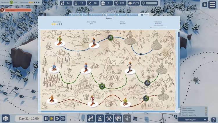 Ve Snowtopii nejsou žádné peníze. Udělejte svým lyžařům dostatečnou radost a možná se připojí k týmu dobrovolníků provozujících areál. Rozdělte svou pracovní sílu mezi operátory výtahů, servisní tým, servisní zařízení a tým pro zlepšování střediska.