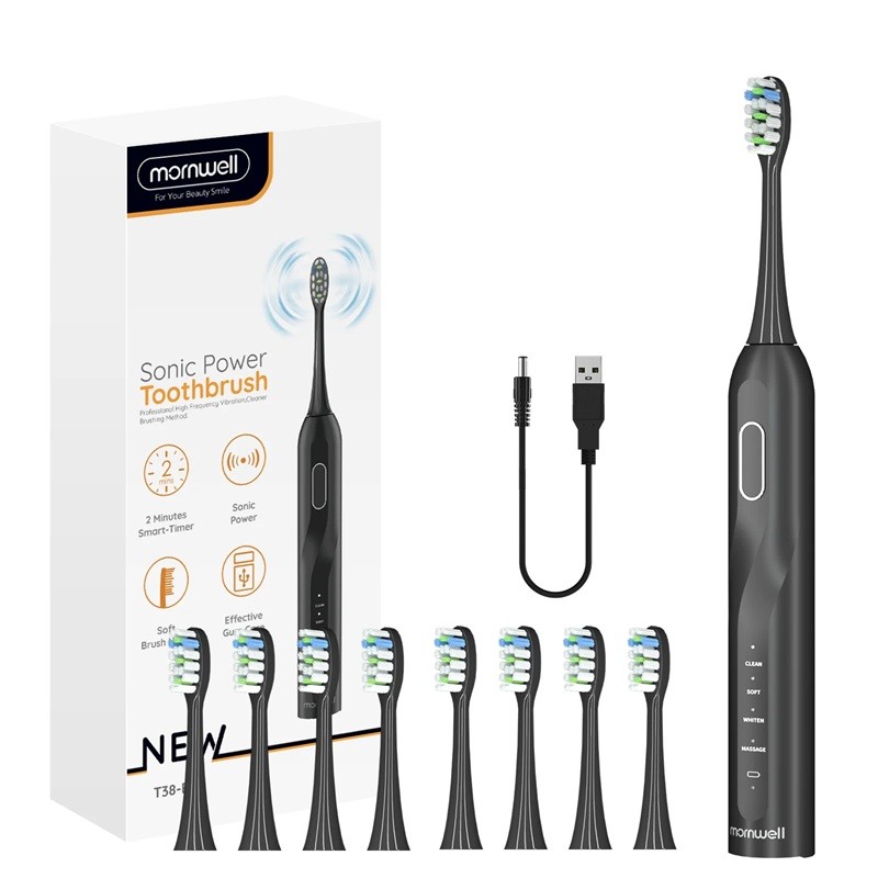• Obsah balení: 1x sonický elektrický zubní kartáček, 8x náhradní hlavice, 1x USB nabíjecí kabel, 1x uživatelský manuál