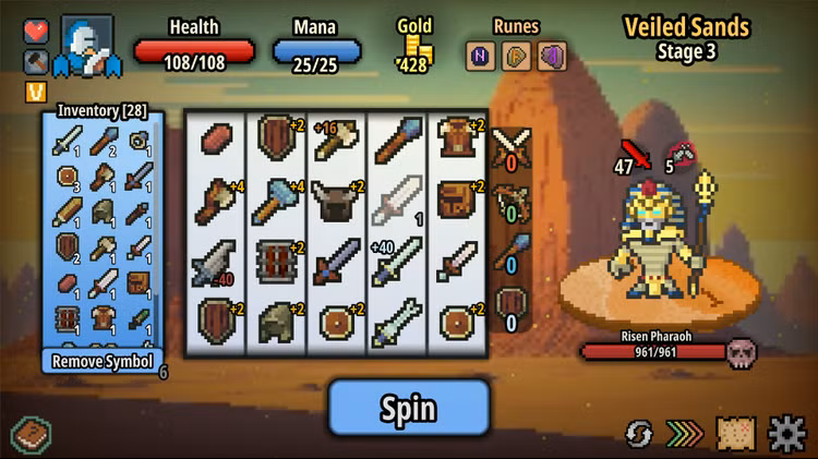 Spin Hero kombinuje vzrušení z roguelike dobrodružství se strategickou hloubkou deckbuildingu . Procházejte procedurálně generovanými fázemi, kde se počítá každé rozhodnutí.
