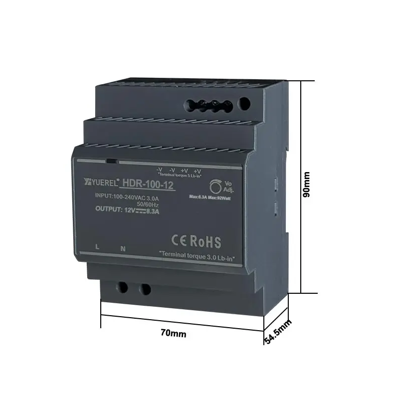 Spínaný zdroj na DIN lištu AC 100–240V DC 12V 8,3A 100W Kompaktní napájecí zdroj 7 x 9 x 5,5 cm Stabilní výkon Průmyslové použití