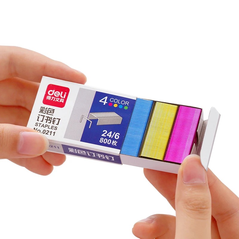 Tyto barevné sponky do sešívačky jsou vhodné pro každodenní použití v kanceláři, škole i domácnosti. V balení najdete 800 kusů sponek, takže zásoba vydrží delší dobu při běžném sešívání dokumentů. Vyrobeny jsou z nerezové oceli, která je praktickým materiálem pro kancelářské příslušenství. Rozměr jednotlivých sponek je 1,2 × 0,6 cm, díky čemuž jsou vhodné pro kompatibilní sešívačky odpovídající velikosti. Barevné provedení zpestří pracovní stůl i organizaci papírů.