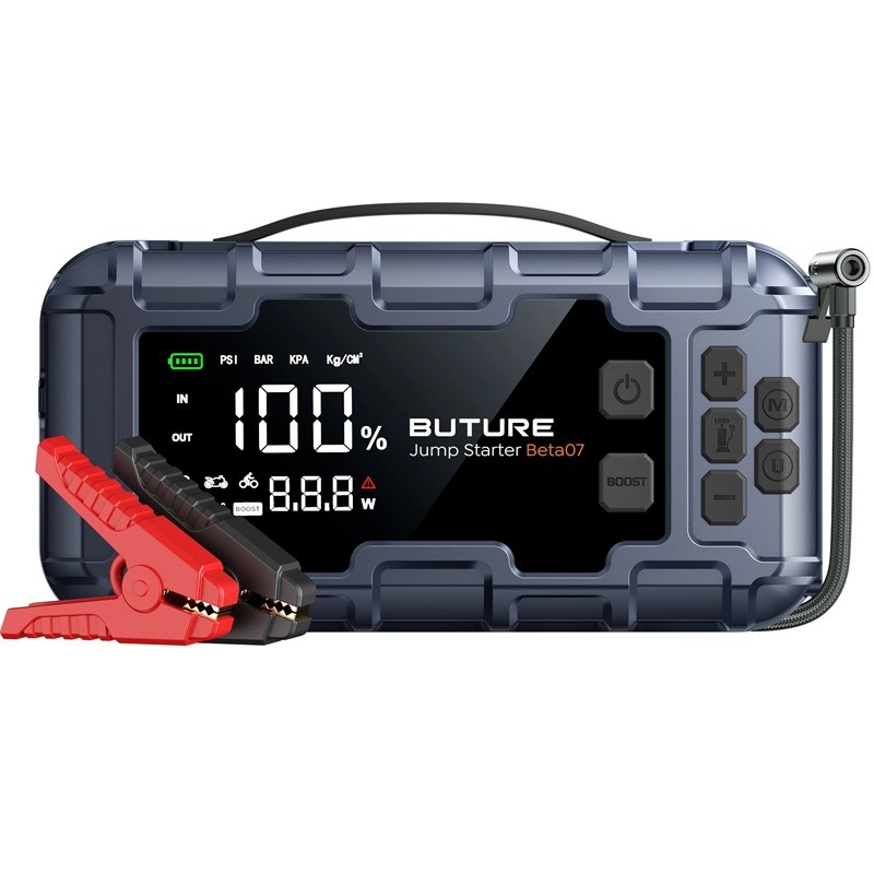 Powerbanka BUTURE Beta07 je univerzálním pomocníkem pro každého motoristu. Díky vysokému výkonu, integrovanému kompresoru a kvalitní svítilně zvládne nejen startování vozu, ale i dofouknutí pneumatik či nabíjení vašich zařízení na cestách. Její 6000A startovací proud, 160 PSI tlak a 45 W rychlé nabíjení z ní dělají jeden z nejvýkonnějších modelů na trhu. Ať už jedete na dlouhou dovolenou, kempujete, nebo potřebujete nouzovou pomoc – BUTURE Beta07 vám zajistí jistotu a bezpečí v každé situaci.