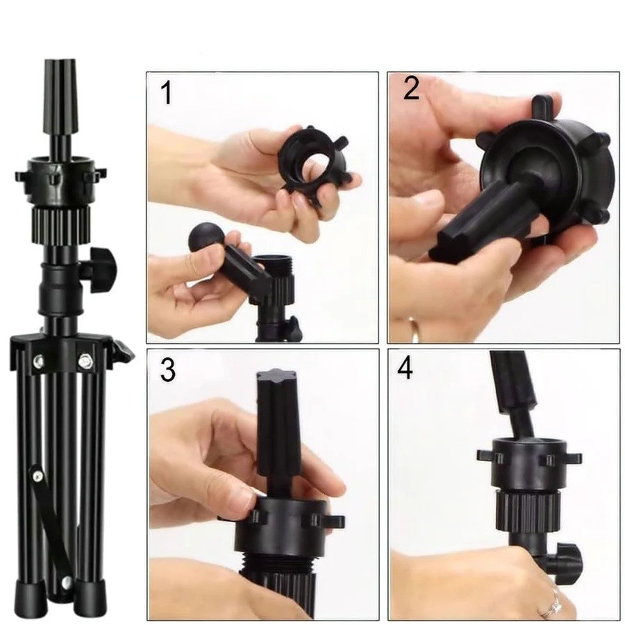 Tento stativ držák na parukové hlavy je ideální nástroj pro kadeřníky, stylisty nebo pro osobní použití. Je navržen tak, aby poskytoval stabilní a flexibilní podporu pro tréninkové hlavy, paruky nebo jiné kadeřnické pomůcky. Stojan je vysouvací až na 57 cm, což umožňuje snadné přizpůsobení výšky pro optimální pracovní polohu. Díky nastavitelné výšce je tento držák vhodný pro různé úkoly, ať už jde o stříhání, tvarování nebo styling paruk. Tento stativ je vysoce stabilní, což znamená, že vaše parukové hlavy zůstanou pevně na místě během celé doby údržby.