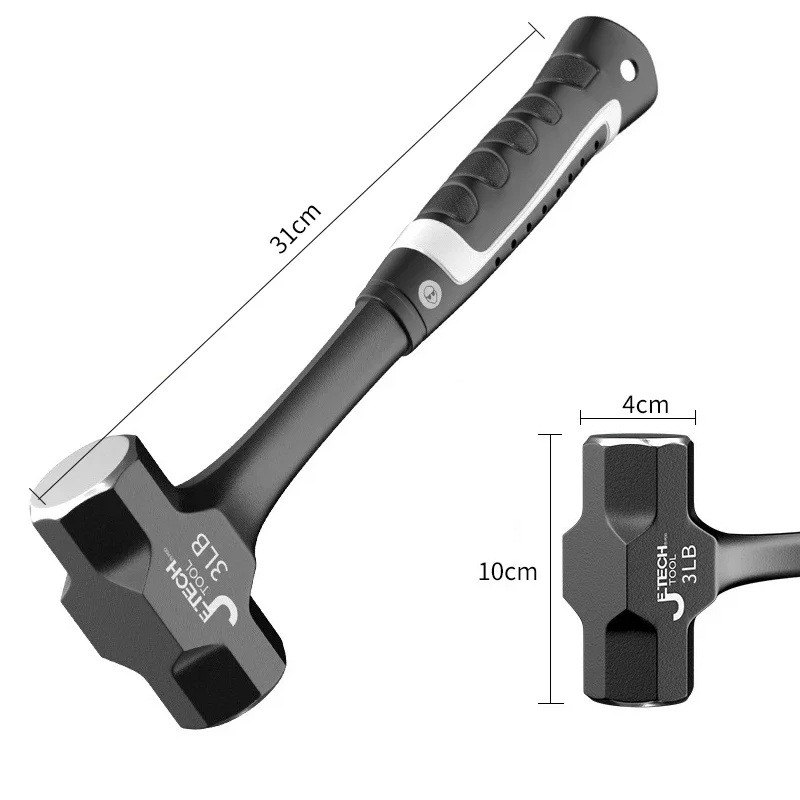 Hmotnost činí 1,6 kg (3LB), což zajišťuje výraznou údernou sílu při zachování dobré kontroly nad nástrojem. Celková délka kladiva je přibližně 31 cm, což umožňuje pohodlné držení i při delší práci. Hlava kladiva má kompaktní rozměr přibližně cca 4 × 10 cm, což odpovídá robustnímu provedení pro efektivní zásah.