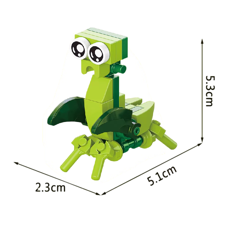 Tato kompaktní mini stavebnice kudlanky nadchne všechny děti, které milují drobnou tvorbu, hmyz a kreativní stavění. Model s rozměry 2,3 x 5,1 x 5,3 cm je vytvořen z 28 mikro cihliček, které umožňují sestavit drobnou, ale působivou figurku kudlanky s jemnými detaily. Stavebnice skvěle rozvíjí jemnou motoriku, trpělivost a prostorové vnímání, takže je ideální volbou pro děti od 9 let. Konstrukce je jednoduchá, přesto dostatečně zábavná, aby děti zabavila a motivovala k dalším výzvám. Díky malému rozměru je model vhodný i jako malá dekorace do pokoje či sbírky hmyzu.