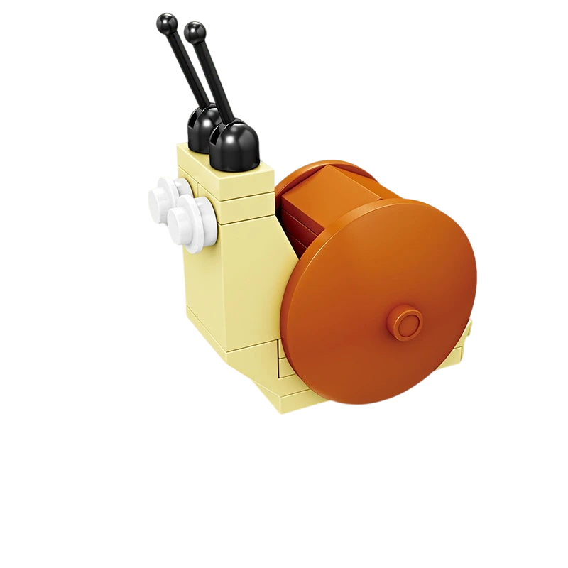 Sestavený šnek může sloužit jako menší dekorace na stole, poličce nebo jako součást sbírky dalších hmyzích modelů. Díky menšímu počtu dílků je skládání rychlé a nenáročné, což je ideální aktivita pro chvíle odpočinku nebo pro krátké tvořivé přestávky během dne. Barevná kombinace béžové a hnědé umožňuje snadno rozpoznat motiv šneka a činí stavebnici vizuálně přitažlivou i po dokončení. Model je navržen tak, aby zachytil základní charakteristické rysy šneka, jako je tvar těla, ulita a výrazné tykadlové části.