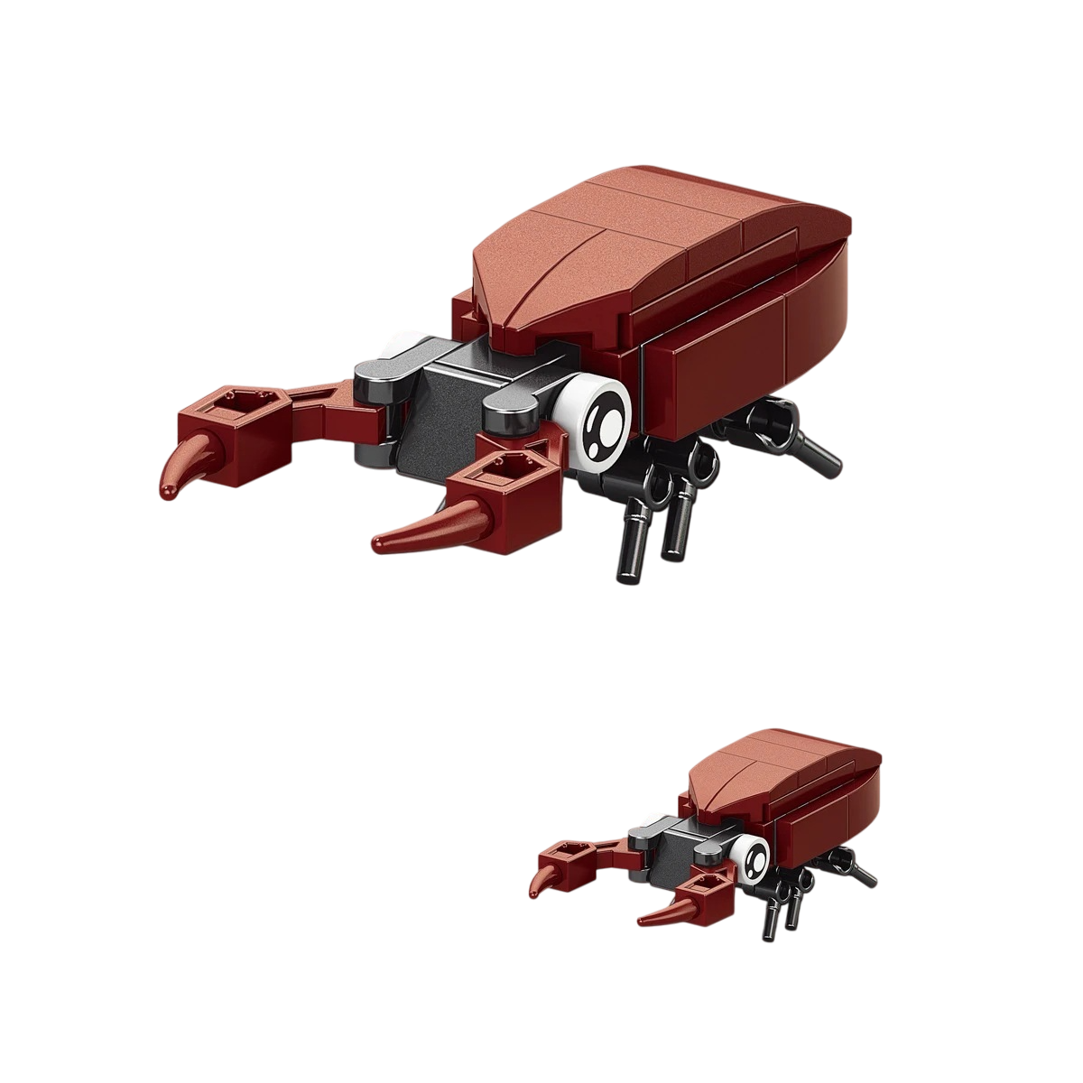 Stavebnice hnědého brouka přináší zábavné kreativní skládání a zároveň vytváří dekorativní model s výraznými klepety a charakteristickým vzhledem. Díky kompaktním rozměrům 7,4 x 3,4 x 2,8 cm se snadno umístí na poličku, stůl nebo do dětského pokoje. Skládá se z 37 dílků z plastu a je ideální pro kratší kreativní chvilky i rozšíření sbírky drobných modelů inspirovaných přírodou. Postup skládání je jednoduchý a výsledný model působí velmi roztomile a poutavě. Díky barevnému provedení je vhodný také jako drobná dekorace.