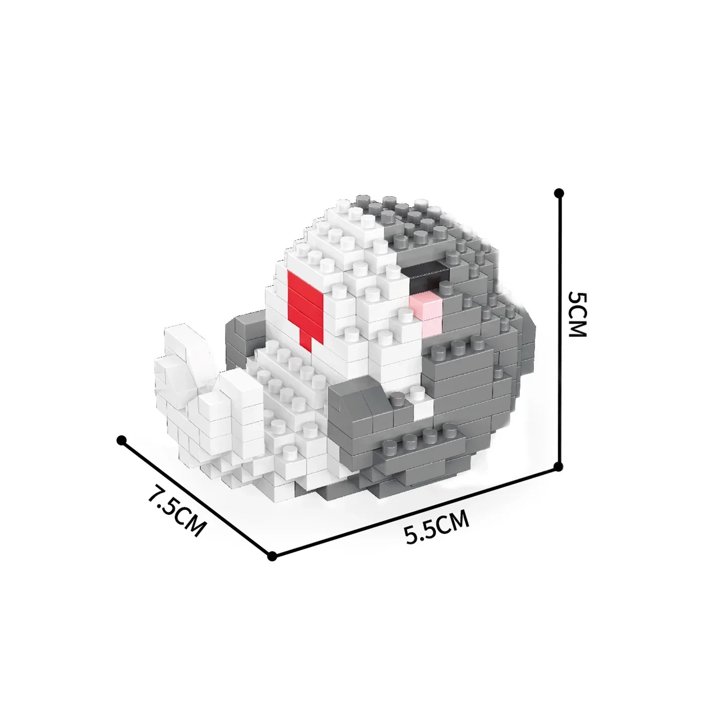Tato stavebnice představuje netradičně zobrazeného malého žraloka ležícího na zádech, stylizovaného do hravé a přátelské podoby. Model kombinuje šedé, bílé a růžové kostičky, které vytvářejí jemný kontrast a dodávají žralokovi typický výraz se spodní bílou tlamou a šedým hřbetem. Díky rozměrům 7,2 x 5,2 x 4,5 cm působí figurka kompaktně a roztomile, ideální k vystavení na stůl, poličku i mezi další mořské miniatury. Pozice na zádech vytváří originální a vtipný vzhled, který okamžitě přitáhne pozornost.