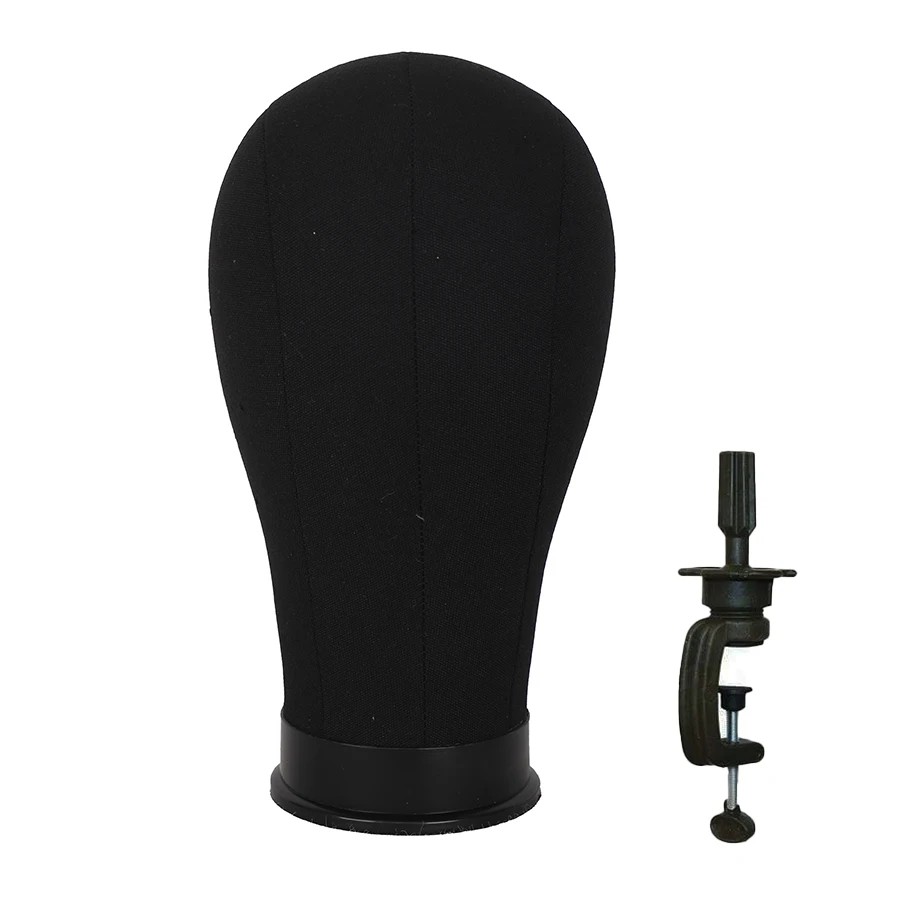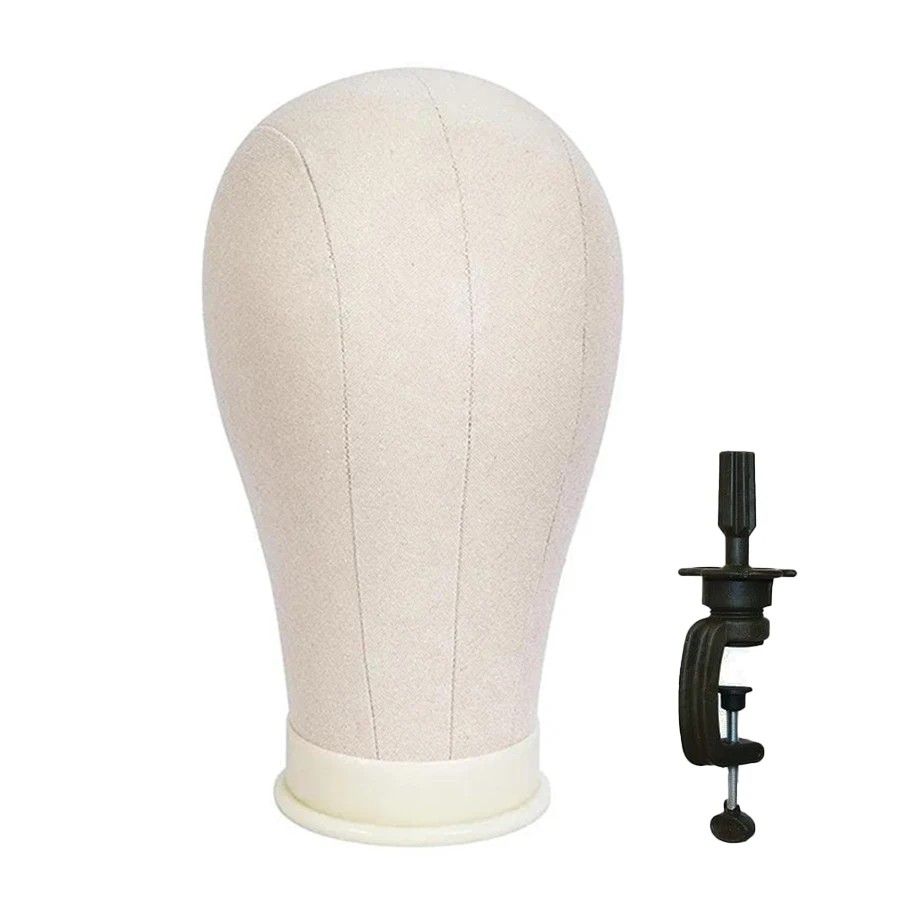 Stojan na paruky s držákem k přidělání na stůl, obvod hlavy 55,88 cm. Ideální pro kadeřnické salony i domácí použití. Vysoce kvalitní plátno. Celý popis