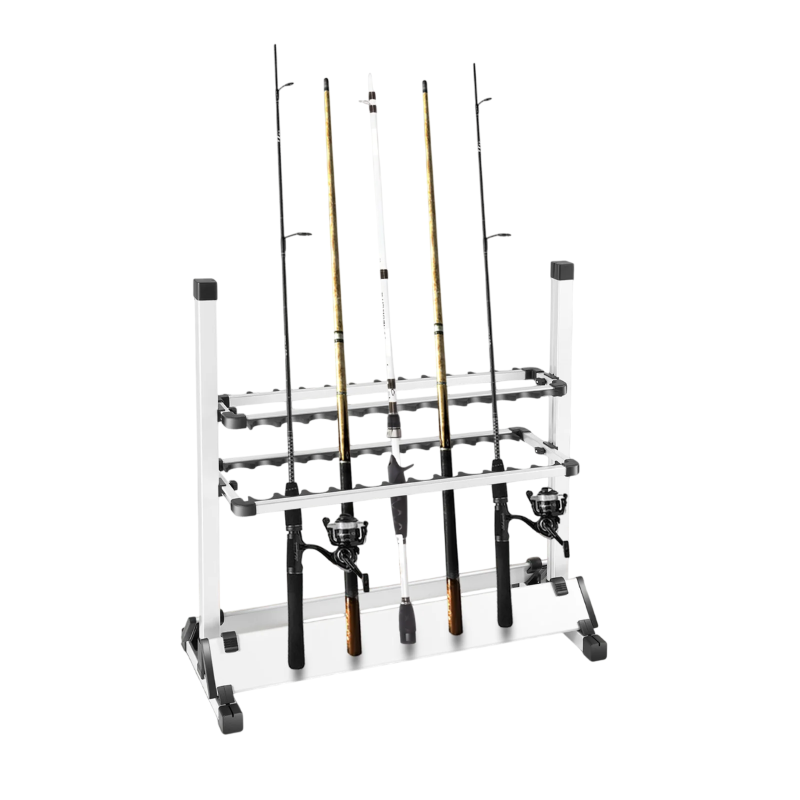 Stojan na rybářské pruty s kapacitou 24 slotů nabízí praktické řešení pro organizaci rybářského vybavení. Vícepatrová konstrukce umožňuje přehledné uložení prutů a snadný přístup při manipulaci. Díky provedení z hliníkové slitiny je konstrukce pevná a zároveň lehká. Stojan je vhodný pro použití doma, v garáži nebo při přípravě na rybolov. Jednoduchý design usnadňuje umístění do různých prostor.