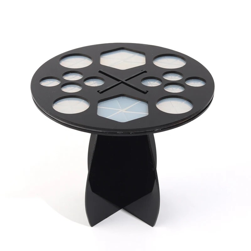Stojan je vhodný nejen pro uložení, ale také pro sušení štětců po jejich vyčištění. Umístění štětců do otvorů umožňuje jejich přirozené schnutí bez kontaktu s povrchem, což pomáhá zachovat jejich tvar a hygienu. Tato funkce je důležitá zejména při pravidelné péči o kosmetické náčiní.