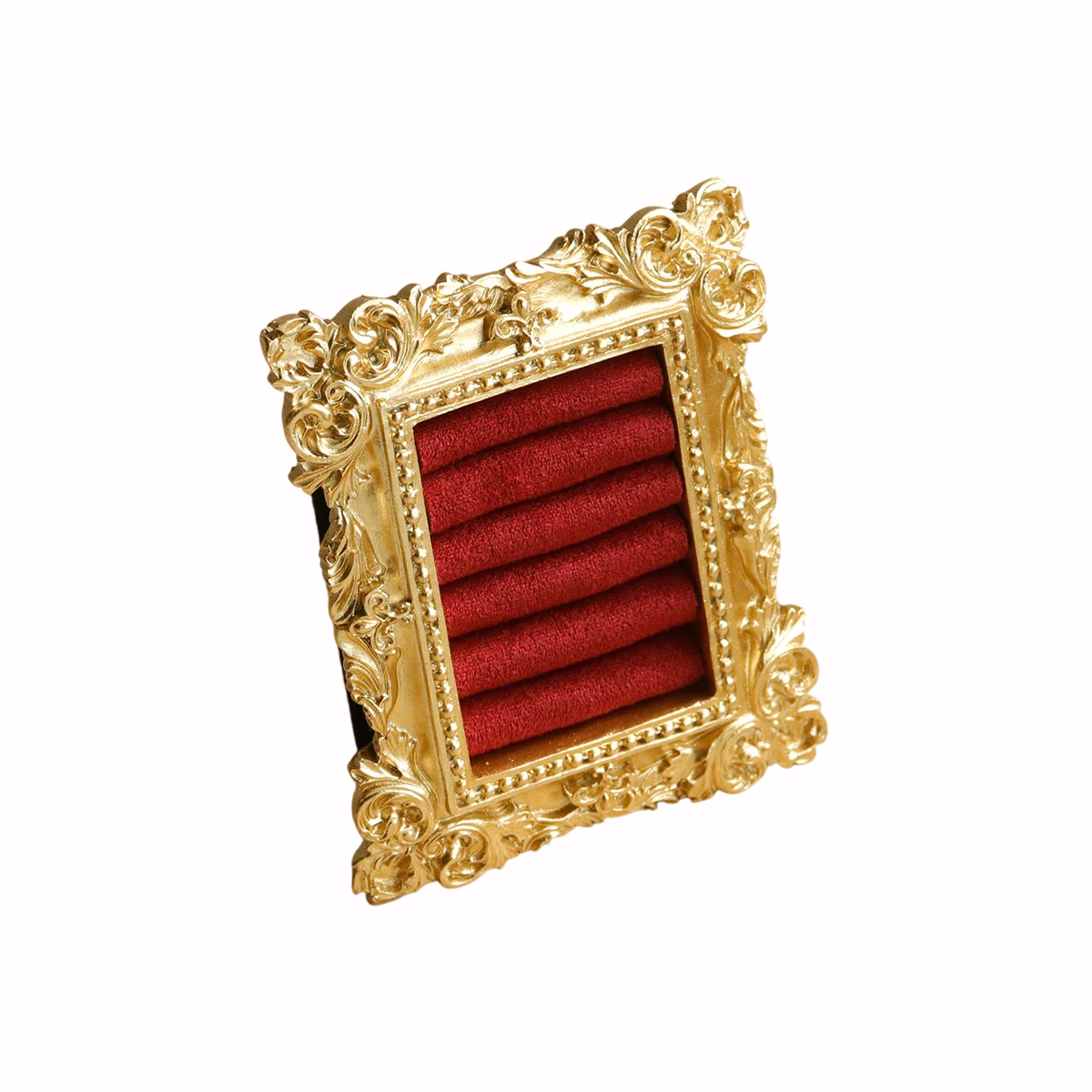 Úvodní strana Úvodní strana Dům a domácí potřeby Dekorace a bytové doplňky Balení dárků Stojánek na prstýnky s rámečkem 8,5×10 cm pryskyřice a samet držák se 6 polštářky ve zlaté barvě rámu s opěrkou na vystavení