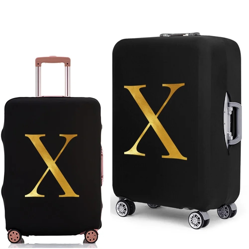 Strečový ochranný potah na cestovní kufr s potiskem písmena elastický kryt 48–53 cm elastická tkanina černý obal na zavazadlo