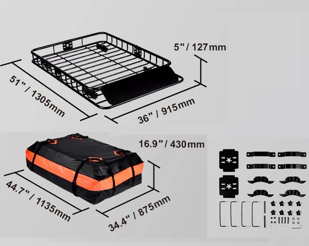 Střešní koš na auto s nosností 90,7 kg a velkými rozměry včetně úložné tašky nabízí praktické řešení pro převoz nákladu. Celý popis