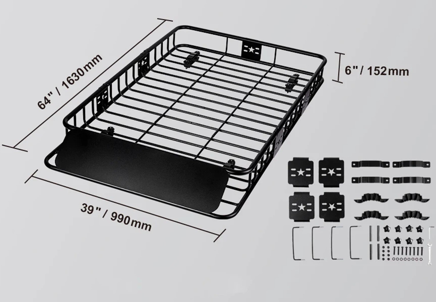 Střešní nosič na auto s vysokou nosností 90,7 kg 1630 × 990 × 152 mm kovový černý koš na střechu pro přepravu zavazadel