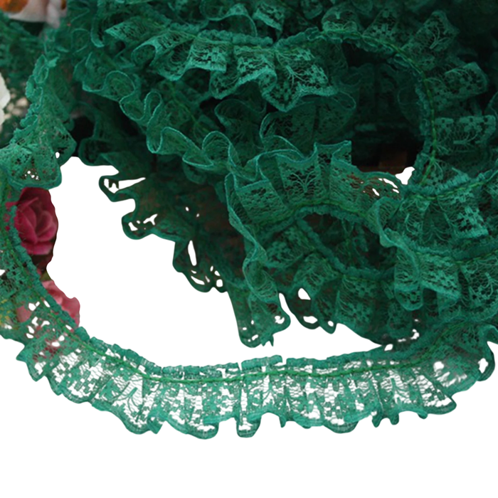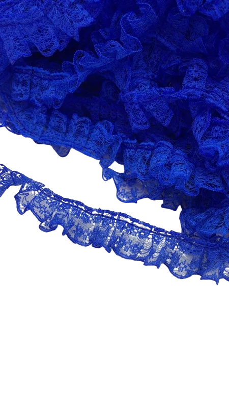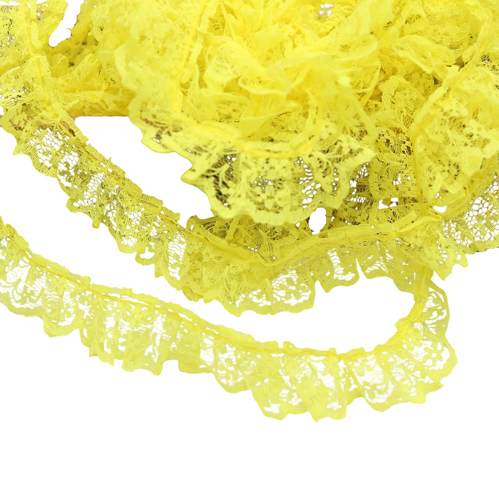 Dekorativní stuha s volánkovou krajkou je ideální doplněk pro šití, zdobení textilu i různé kreativní projekty. Jemný krajkový design s volánky dodává výrobkům elegantní a romantický vzhled. Stuha je vyrobena z odolného polyesterového materiálu, který zajišťuje dlouhou životnost a zároveň snadnou manipulaci při práci. Díky praktické šířce 2,3 cm je vhodná pro dekorativní lemování oděvů i bytových doplňků. Celková délka 4,6 m poskytuje dostatek materiálu pro větší množství šicích i kreativních projektů.