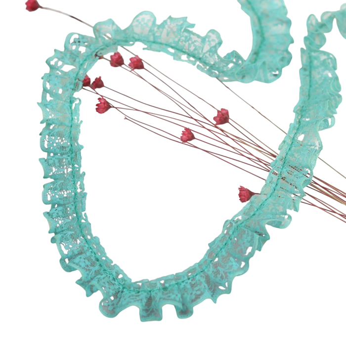 Dekorativní stuha s jemnou volánkovou krajkou je ideální pro zdobení oděvů, bytových doplňků i kreativní DIY projekty a ruční tvorbu. Celý popis
