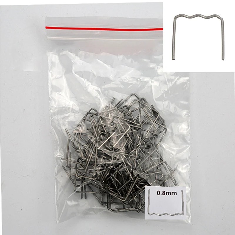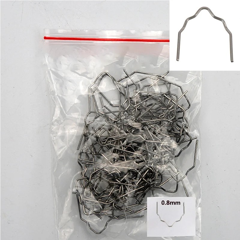 Součástí sady jsou kovové spony různých tvarů, které pomáhají zpevnit opravované místo. Tyto spony se používají pro vyztužení spoje a zajištění lepší stability opravy. Díky různým tvarům lze spony přizpůsobit konkrétnímu typu poškození. Přiložené příslušenství umožňuje okamžité použití bez nutnosti dalšího vybavení.