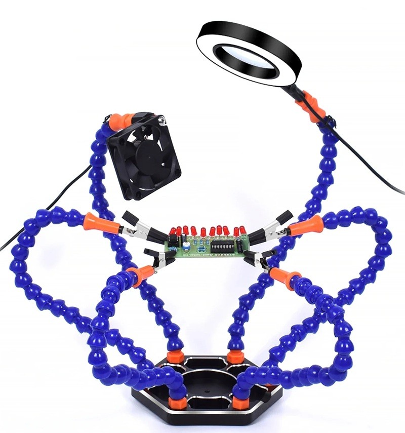 Stanice nabízí praktické řešení pro práci s elektronikou, kde je potřeba stabilita a přesnost. Díky lupě lze snadno kontrolovat detaily spojů. Ventilátor přispívá k lepším podmínkám při práci. Flexibilní ramena umožňují individuální nastavení. Celek tvoří funkční pracovní pomůcku pro každodenní použití.