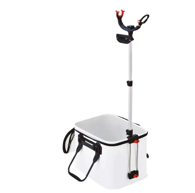 Skládací teleskopický držák prutu z hliníkové slitiny s nastavitelnou výškou 46–95 cm. Vhodný pro použití na rybářský box. Celý popis