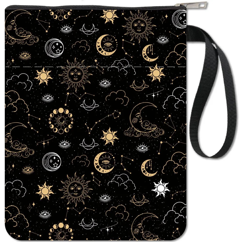 Textilní zipové pouzdro 28 x 22 cm voděodolný organizér s kapsou a poutkem motiv měsíc slunce souhvězdí
