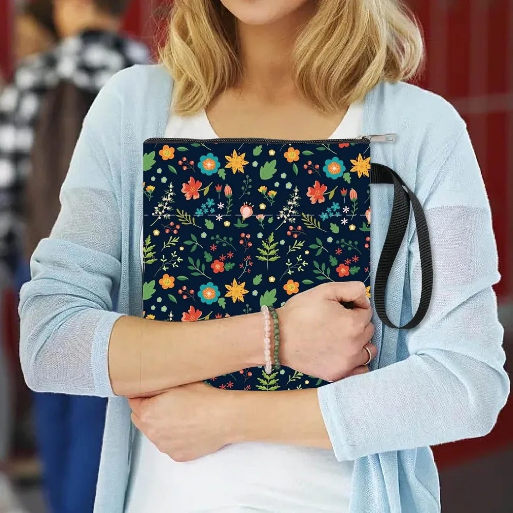 Textilní zipové pouzdro s květinovým vzorem 28 x 22 cm voděodolné organizér s poutkem a přední kapsou
