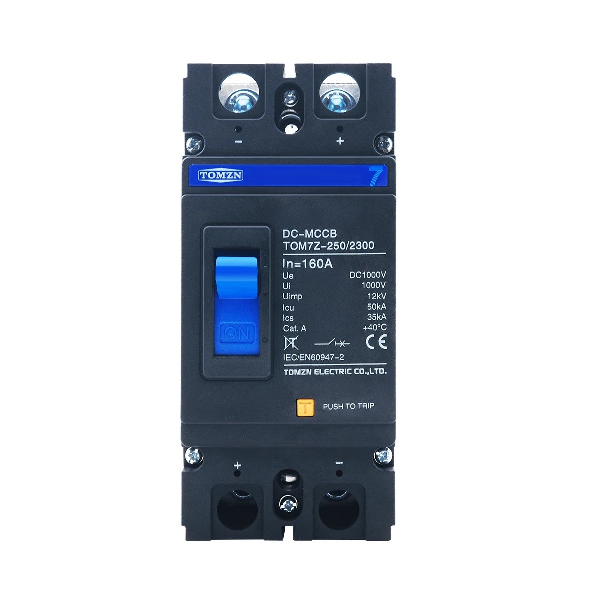 TOMZN 2P DC 1000 V MCCB solární jistič s jmenovitým proudem 160 A je vysoce spolehlivý ochranný prvek určený pro náročné fotovoltaické instalace. Díky dvoupólovému provedení 2P zajišťuje bezpečné a úplné odpojení obou pólů stejnosměrného obvodu, což je zásadní pro prevenci nežádoucích proudů a ochranu celého FV systému. Je navržen pro použití v moderních solárních sestavách pracujících s vysokým DC napětím 1000 V, které vyžadují robustní ochranu a maximální odolnost.