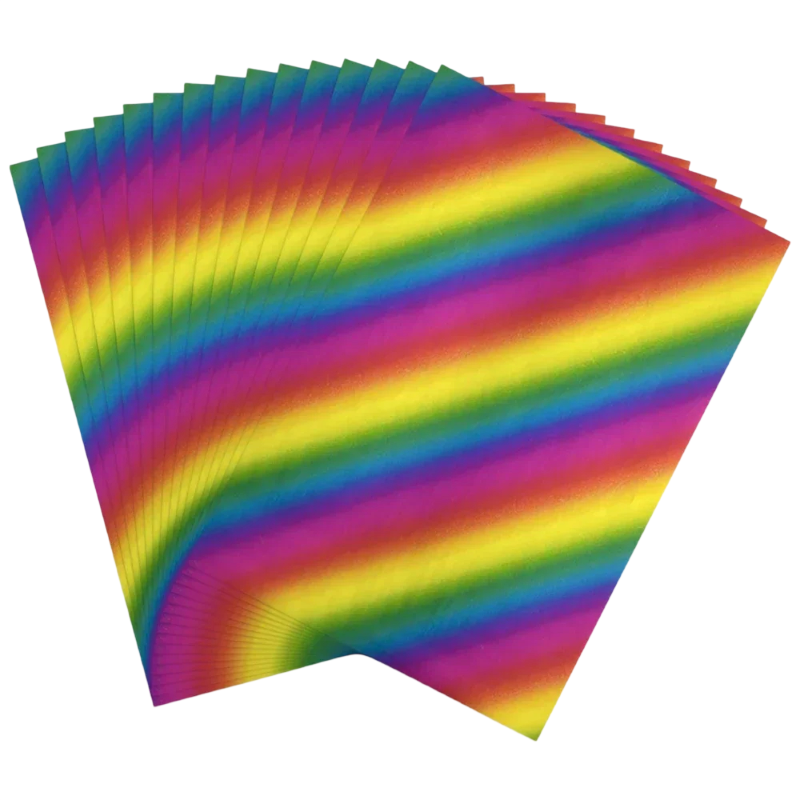 Fólie s duhovými pruhy pro horkou ražbu reagující na toner. Ideální pro laserový tisk a laminátor při tvorbě dekorací a papírových projektů. Celý popis