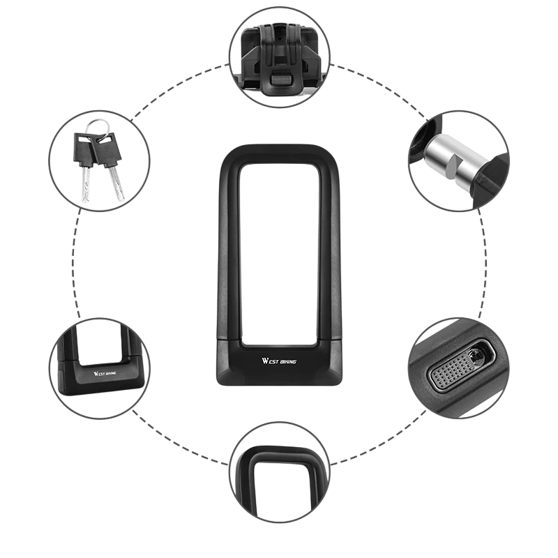 - Obsah balení: 1× U zámek na kolo, 2× klíč, 1× držák na rám kola