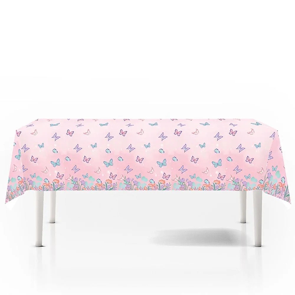 Motýlí motiv patří mezi oblíbené dekorace pro dětské oslavy. Růžový ubrus s motýlky dodává slavnostní tabuli jemný a elegantní vzhled. Skvěle se hodí pro narozeniny, zahradní oslavy nebo tematické party s motýlí výzdobou.