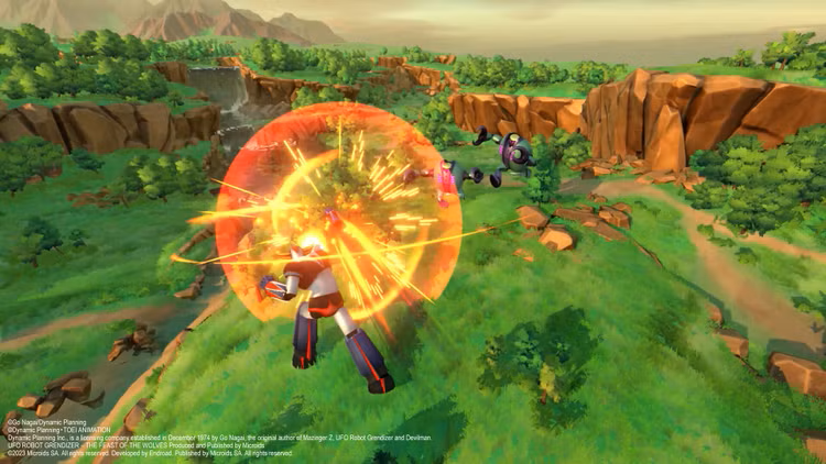 Hrajte jako Umon Daisuke a jeho kolosální robot a bojujte v epických bitvách s několika hratelnostmi: Pilotování Spazeru (létající modul, kde je umístěn Grendizer), vertikální střílení je nahoru v TFO Kôji Kabuto a akce/boj ve 3. osobě ovládáním Grendizeru. . Použijte jeho ikonické a ničivé útoky ke zničení děsivých Monstronefů a záchraně země.