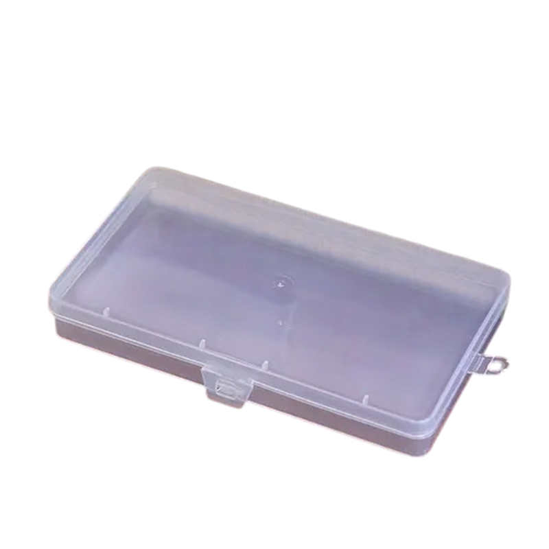 Průhledná plastová krabička s víkem pro přehledné uložení drobností. Nízký profil a rozměry 17,5 × 2,3 × 10 cm šetří místo. Celý popis